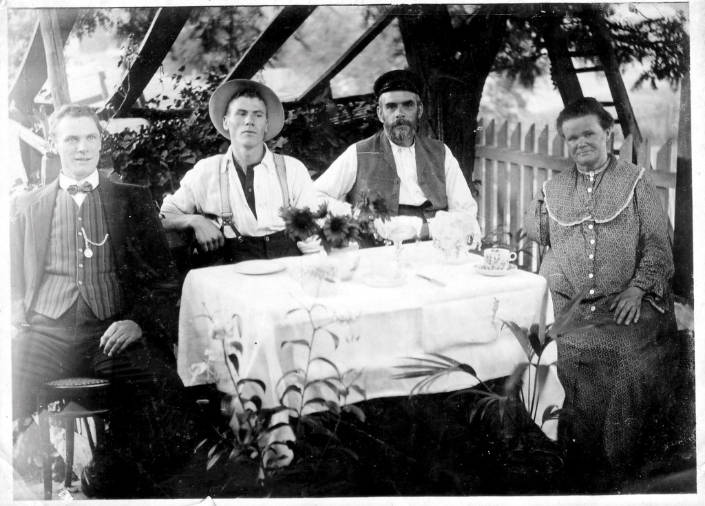 The couple must have felt nostalgic for their English landscape for they planted a poplar tree and several Hawthorne trees along the front picket fence as well as several Oak trees on the side. There are several photographs in the family album of David and Mary Ann enjoying a cup of tea while sitting beside a linen covered table, under one of the Hawthorne trees.