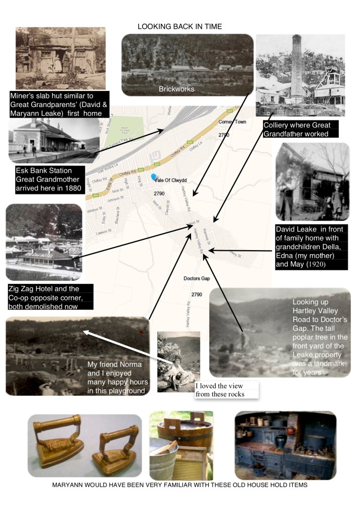 Some years ago, I created this annotated map in memory of My Great Grandparents, David and Mary Ann Leake who settled here in 1880. The home that they built remained in the family until my Aunt Della passed away in the 1980’s. I have many happy memories of times that I spent there visiting my Grandfather, (their son Arthur) and later my two Aunts, May and Della.